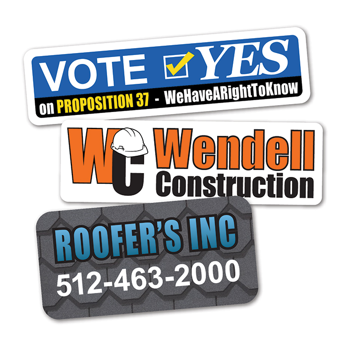 - Bumper Sticker Magnets – A great way to share a message, logo, or brand while keeping your vehicle’s paint intact.